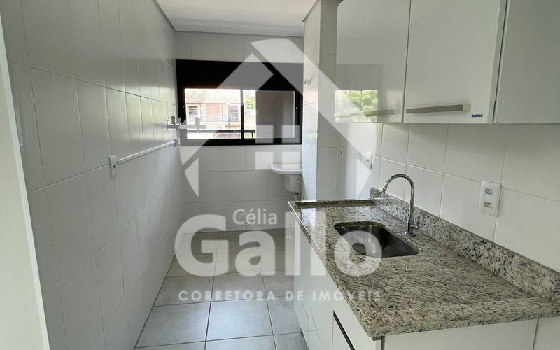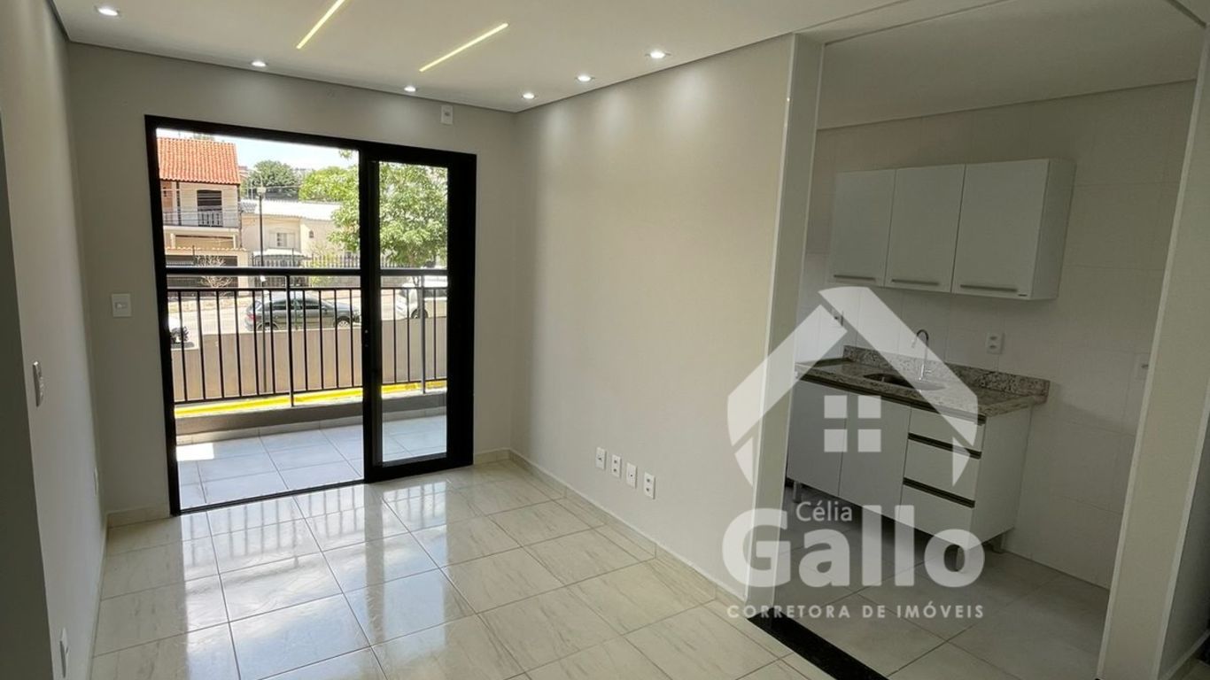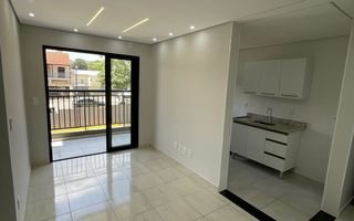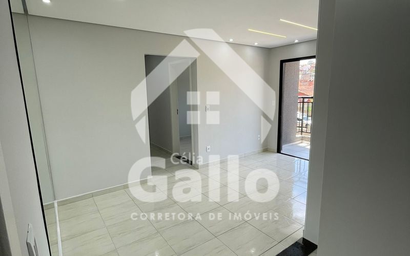 Sala de estar, Sala de jantar, Cozinha, 2 quartos, 1 banheiro, 1 vaga na garagem coberta.